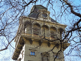 Tramvají na Letenské náměstí a přes křižovatku do Korunovační ulice. Tady už vidíme budovu Letenské vodárny. Moc se mi líbí, tak ji obcházíme skoro ze všech stran. A proto je tu tolik podobných fotek - nemohu si pomoci...